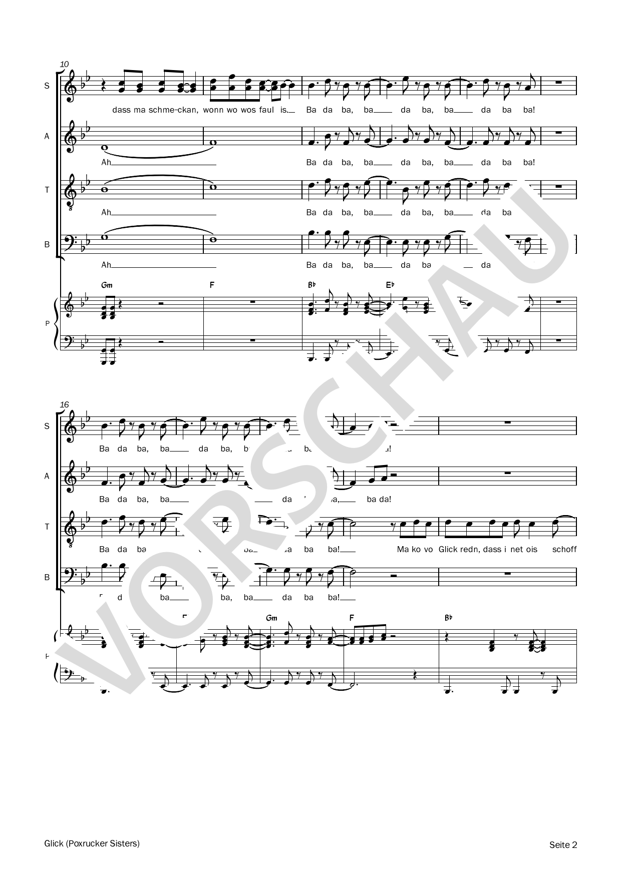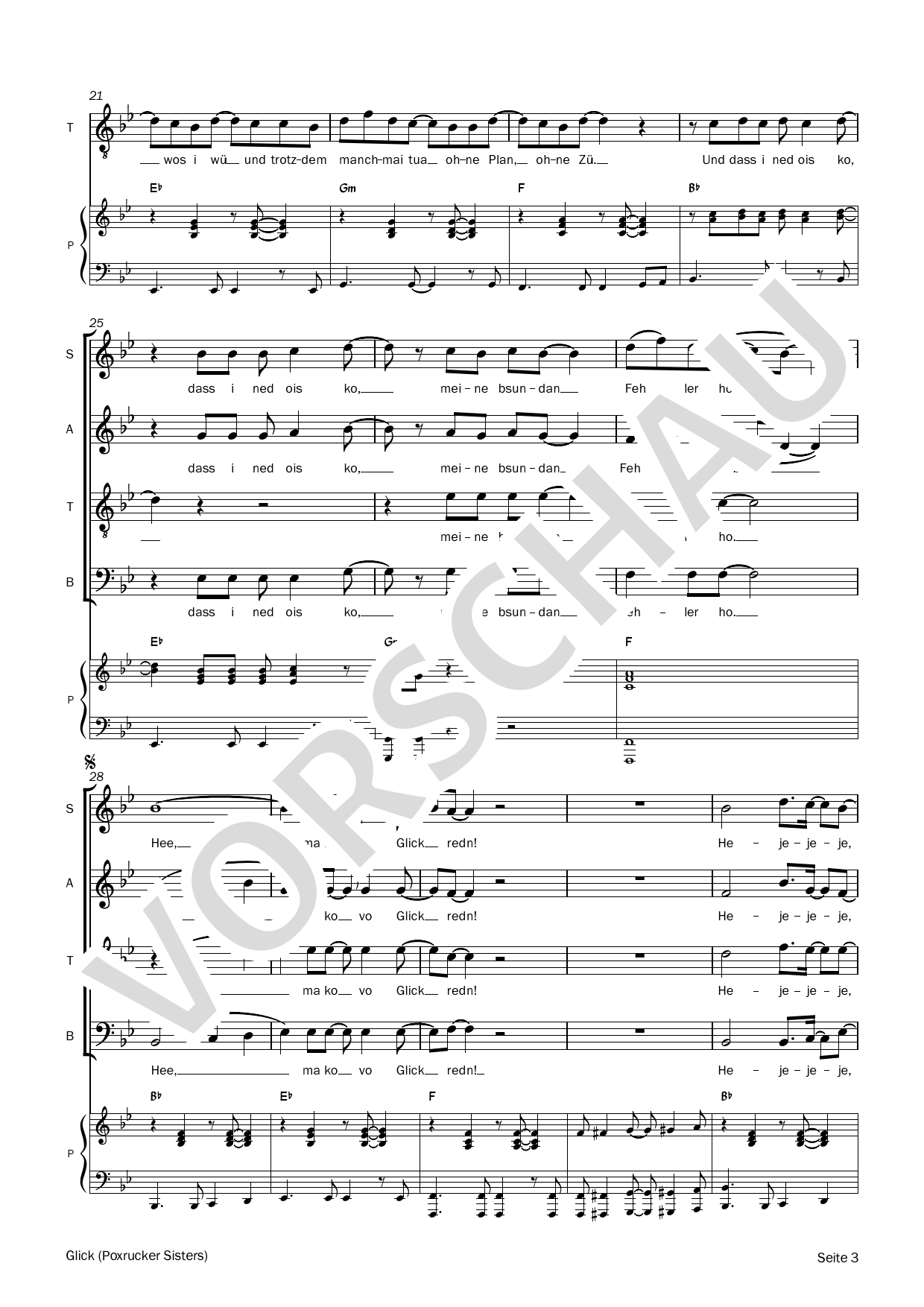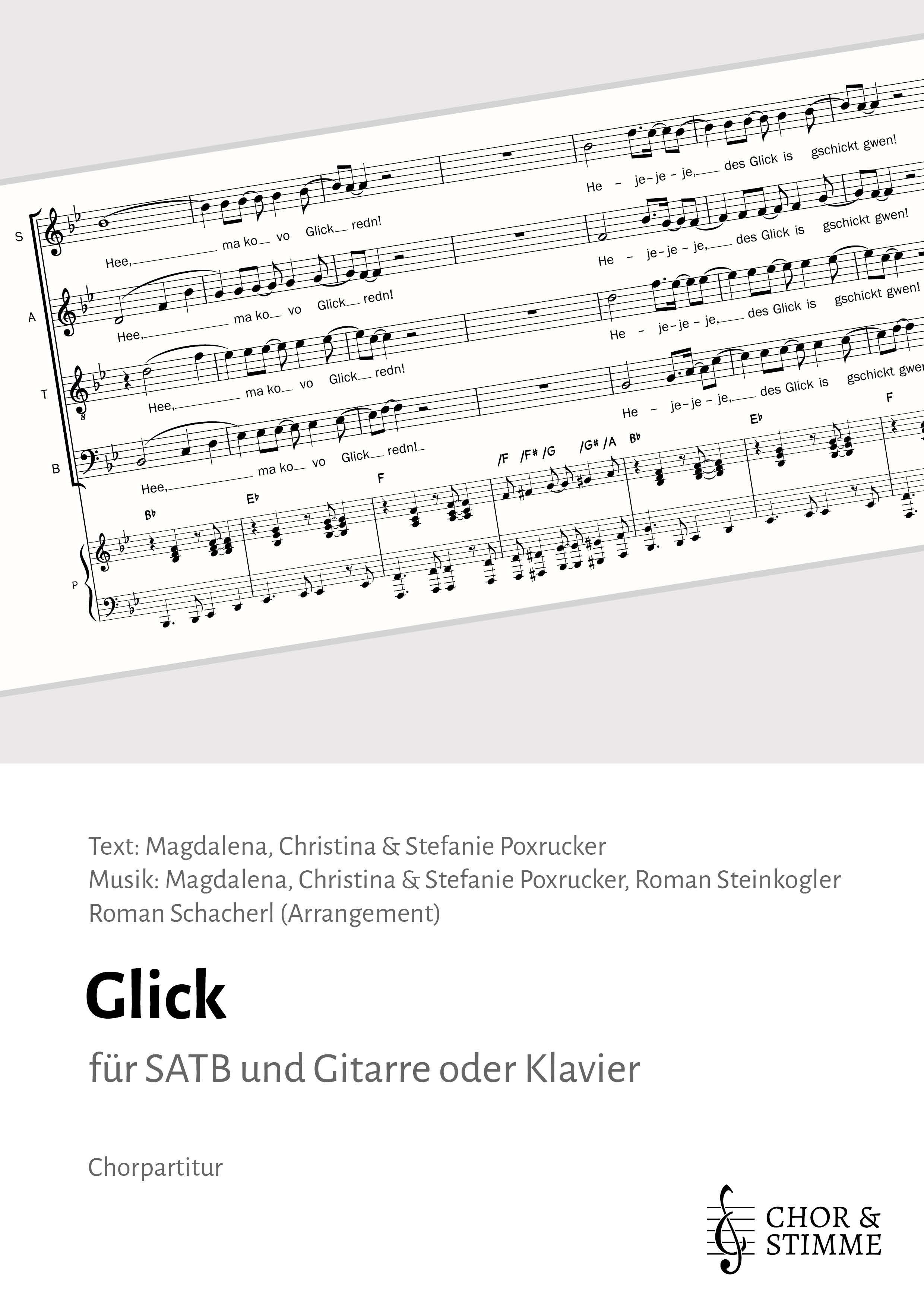 Die Poxrucker Sisters haben 2014 mit ihrem Song “Glick” einen echten Stimmungsmacher veröffentlicht. Das vierstimmige Chor-Arrangement von Roman gibt diese gute Laune authentisch wieder und macht allen Stimmgruppen Spaß zu singen. Die Strophen sind als Tenor-Solo vorgesehen.